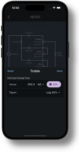 Edit resistor, capacitor, inductor, voltage source and potentiometer values.